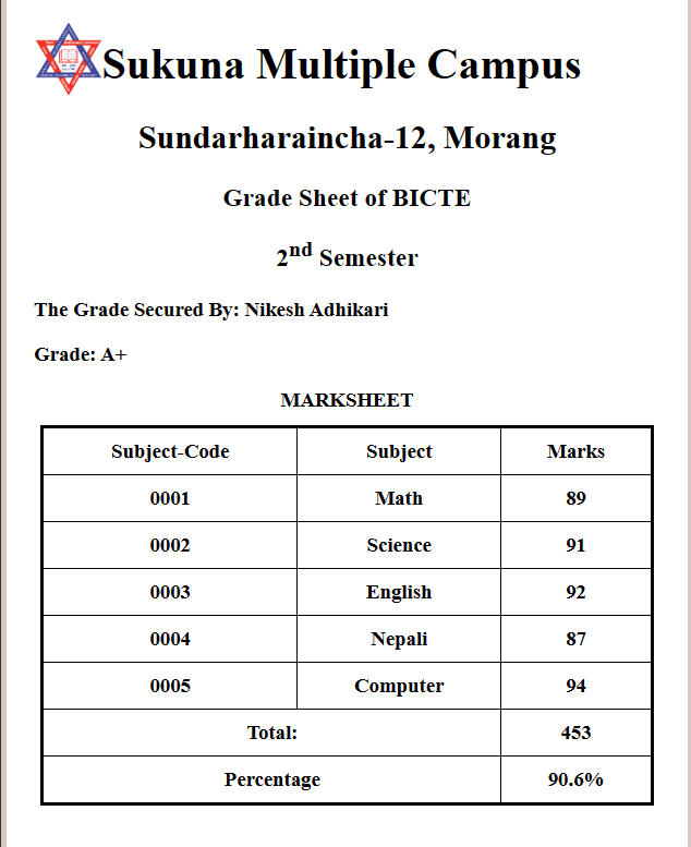 Marksheet